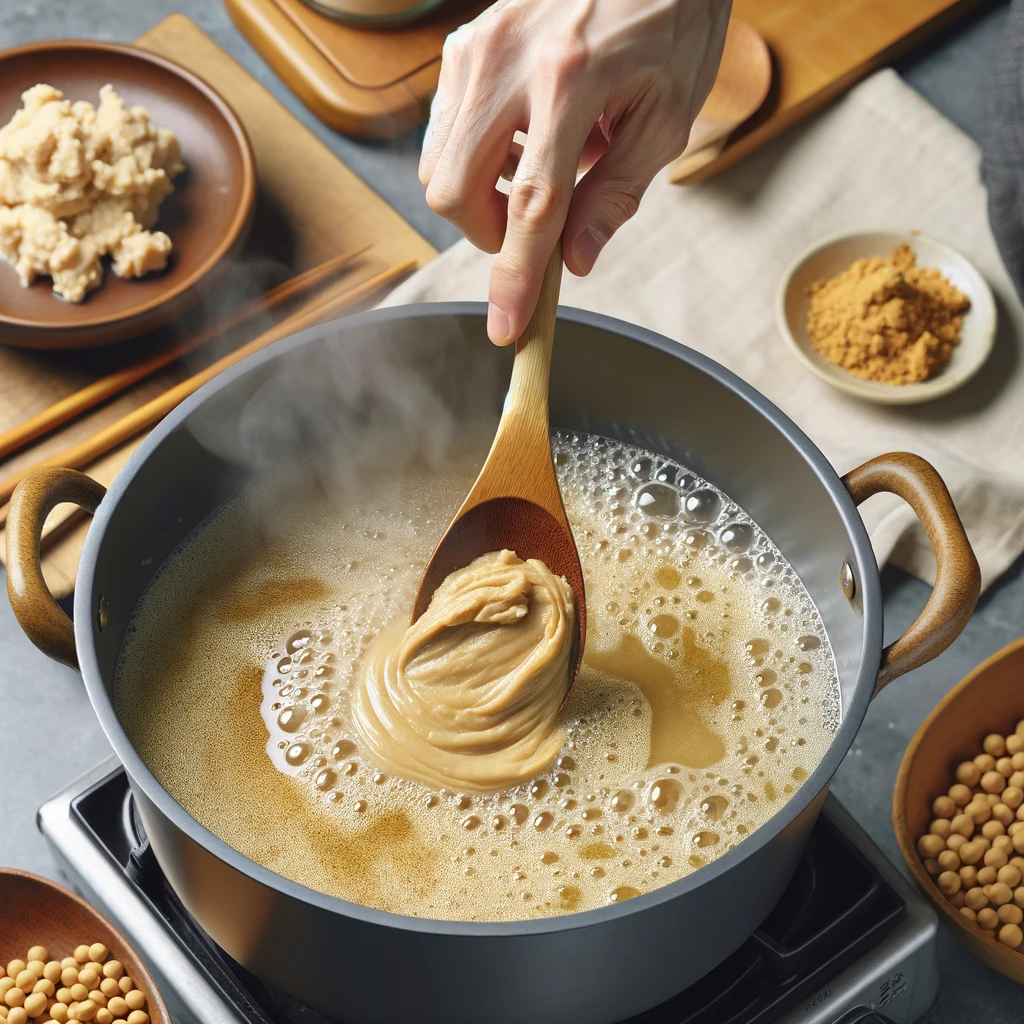 2. 냄비에 물이 끌으면 된장을 넣고 잘 풀어줍니다.