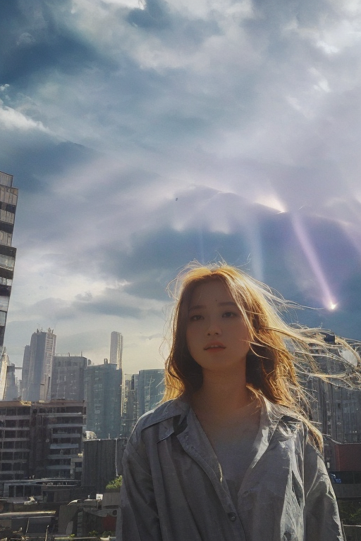 빛이 구름 사이로 쏟아져 나오는 모습을 묘사하는 프롬프트입니다. 예시 이미지는 살짝 퀄리티가 떨어지기는 한데 반복적으로 생성하다보면 괜찮은 이미지를 뽑을 수 있습니다. 이런 빛 프롬프트를 사용하면 신비롭고 경이로운 느낌을 줄 수 있어 좋습니다. 주로 자연 풍경이나 초현실적 판타지 소설에 나오는 장면을 연출할 때 사용하면 좋습니다.